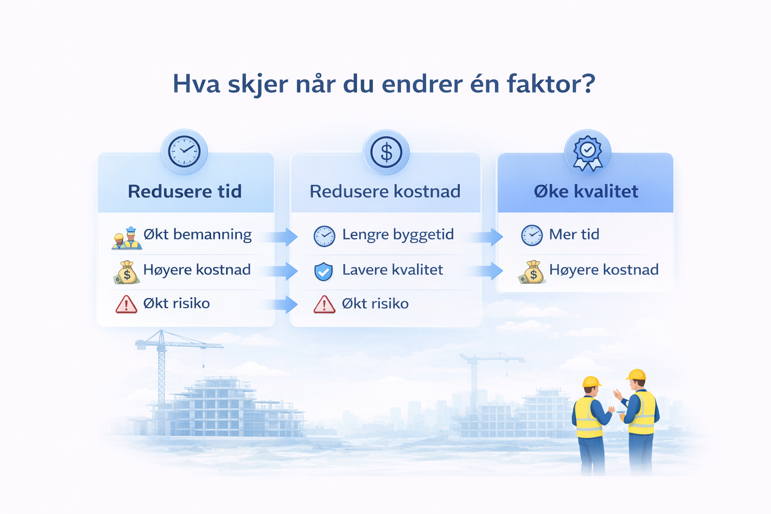 → lengre byggetidEller redusere kvalitet