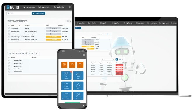 my mobile gives you full control over your projects, whether you're sitting in the office or working out on the construction site. With the app, you can record hours, checklists, HSE and deviations directly from your mobile, and everything is automatically synchronized when you're online.